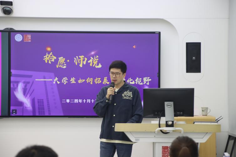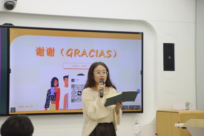 管伟分享了自己赴马德里康普斯顿大学求学的心得感悟,他从西班牙概况、西班牙教育体系等方面带领同学们了解了西班牙的风土人情与教育情况。他鼓励同学们积极参与到国际化的交流中去,主动和不同地区的人和事交流,提升自我视野,服务于自身更好的成长。