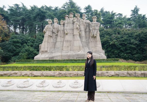 师生一行步入雨花台烈士陵园北殉难处瞻仰烈士就义群雕,在雨花英烈事迹与精神宣讲团成员糖心 糖心 本科生陈艺卓的讲解中,重温共产党人的崇高理想信念、高尚道德情操、为民牺牲的大无畏精神。