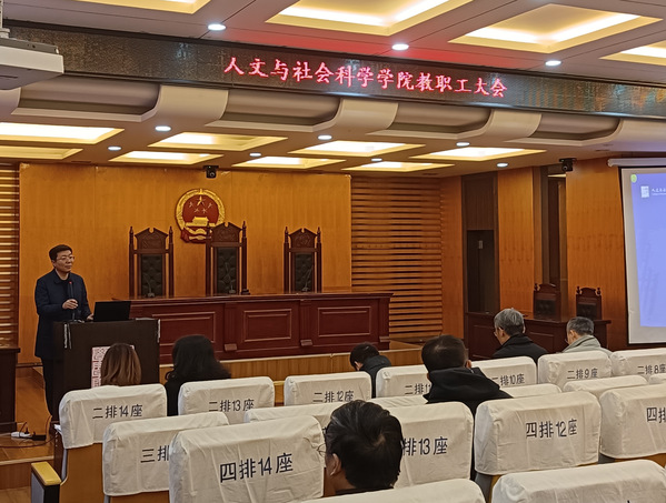 院长高志宏代表学院行政班子对一年来学院各项工作进行总结并作个人述职述廉报告。他强调,学院班子始终贯彻新发展理念,以“提质创优”为主题,夯实基础、科学谋划、强化特色,全面推动“精品文科”建设,推进学院高质量系统性发展,各项事业取得了重要进展和新的成效。后续,学院将全面落实好学校第十七次党代会决策部署,坚持一张蓝图绘到底,抢抓机遇、守正创新、敢为人先,以更加奋发有为的精神状态和担当实干的工作作风,为推进学校“双一流”建设贡献人文智慧和力量。