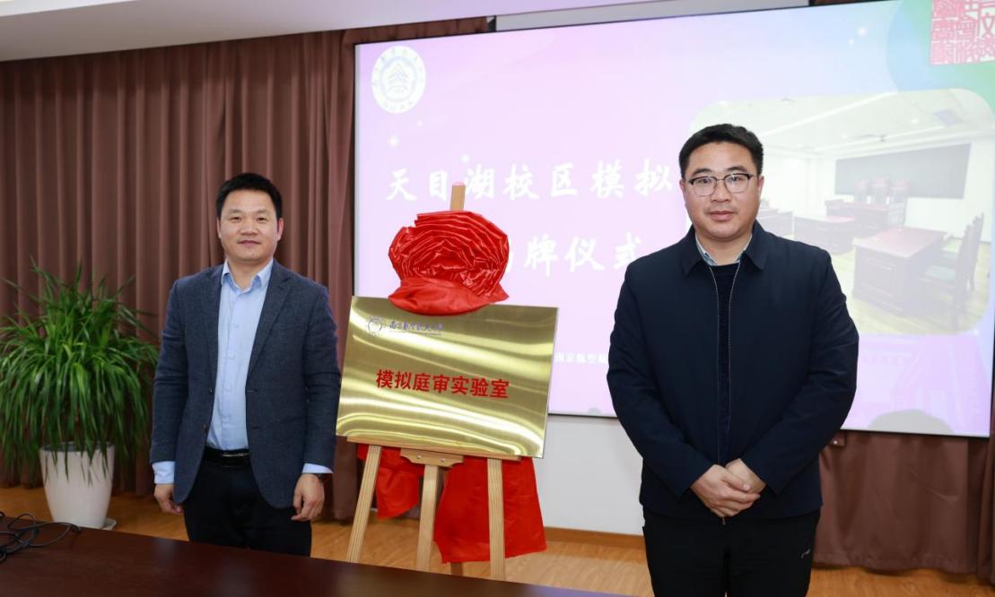 今年,学院学生第一次入驻天目湖校区,为了给学生提供真实的模拟庭审环境、锻炼学生专业实践能力、培养法律核心素养,糖心 与天目湖校区共建模拟庭审实验室。缪长宗、高志宏共同为模拟庭审实验室揭牌。