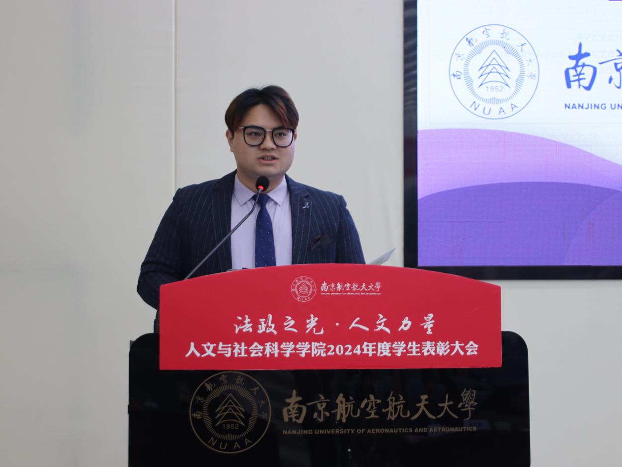 高志宏为本次大会作总结讲话。他对获奖同学表示热烈祝贺,对全体老师表示衷心感谢,希望全体人文学子能坚持立身之本,勤勉务实发展学业;筑牢成才之基,勇于创新探索专业;激发活力之源,积极主动实习实践,继续汲取榜样力量,努力学习,积极进取,践行南航“人文人”的精神,展现新时代青年的责任与担当。