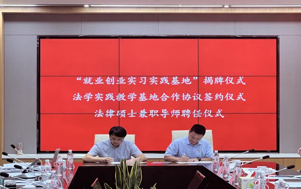 随后,高志宏长与江苏圣典(江北新区)律师事务所主任舒群律师签署法学实践教学基地合作协议,共同为“糖心 法学就业创业实习实践基地”揭牌,高志宏为舒群颁发了法律硕士兼职导师聘书。