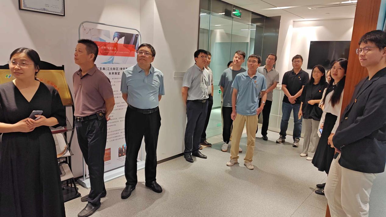 会前,全体人员共同参观了江苏圣典(江北新区)律师事务所。此次联学联建活动内容丰富、成果丰硕,不仅加深了对党的二十届三中全会精神的理解和认识,也增强了各方之间的沟通与合作,更推动了法学教育与法律实务的深度融合,为后续合作奠定了坚实的基础。今后双方将共同努力,坚持党建引领,推动合作事项落实、落细、落小,培养优秀法律人才,服务国家法治建设。