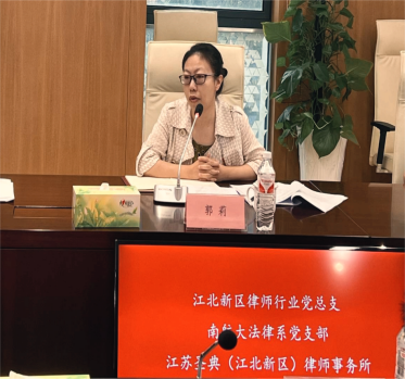 在重点发言环节,郭莉、唐文凯及江苏圣典(江北新区)律师事务所党员律师代哲、依次分享学习党的二十届三中全会报告精神心得体会。郭莉介绍了法律系党支部的党建情况,分享了支部“两坚持”“一创新”的党建理念和实践。代哲讲述了自身的法律服务经历,突出强调了党建不仅能够提升律师队伍的凝聚力和战斗力,还能更好地服务于社会和当事人。唐文凯表示,江北新区律师行业党总支将积极支持和推动与南航人文学院法律系的合作,共同探索党建与法律实务相结合的新路径。