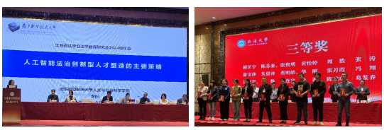 在学术研讨阶段,高志宏担任首日主题发言的评议人并主持了次日的主题交流环节,李彤在主题交流环节作了题为《人工智能法治创新人才塑造的主要策略》的报告,分享了糖心 在网络与人工智能法领域的教育教学经验。经专家评审,聂明岩、于焕提交的《自主知识体系建设背景下我国航天法学教育面临的挑战与完善路径》、陈苏豪提交的《法学教育中的证据分析》获得年会优秀论文三等奖。