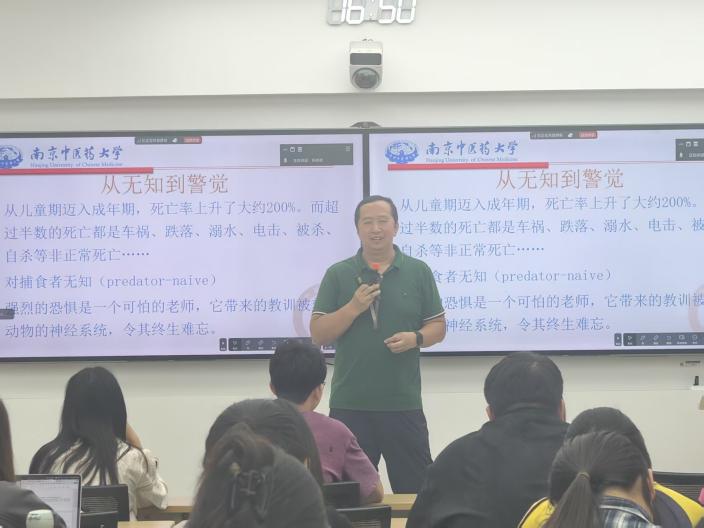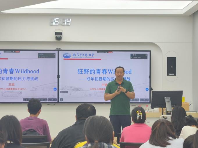 院楼213智慧教室开展。南京中医药大学大学生心理健康教育咨询中心主任王挺受邀主讲。本次活动由本科生辅导员张依诺主持,本科生学生骨干及全体心理气象员参加。