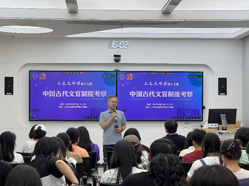 在院楼213教室开展第十七期“人文大师课”专题讲座。本期大师课特邀美国科罗拉多大学历史系终身教授魏阳以《中国古代文官制度考察》为主题开展讲座,人文学院公共管理系60余名师生参加。