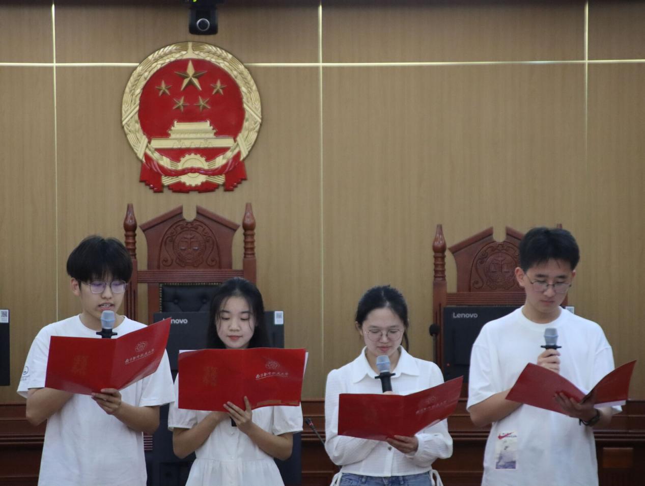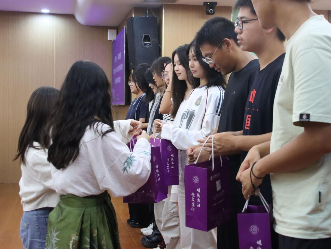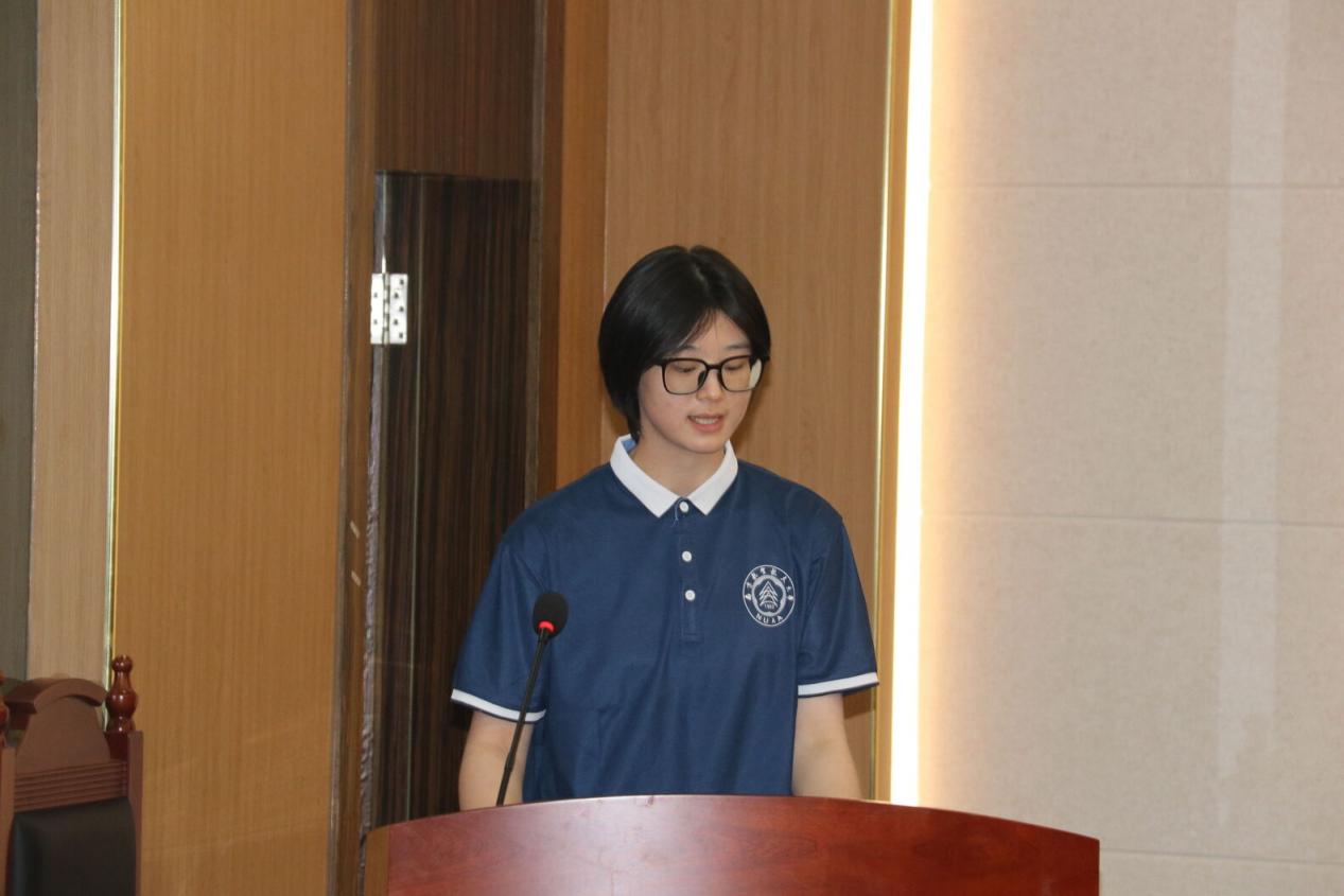 高年级学生代表带来集体诗朗诵《拾愿为桨,伴你启航》,以诗画形式分享了大学学习、生活的收获和感悟,以真挚情感传递学长学姐的关怀与期许。2025级法学专业陈韵涵作为新生代表分享了对大学生活的憧憬,表示将珍惜大学四年的青春时光,主动汲取知识、参与实践,努力成为合格的南航“人文人”。