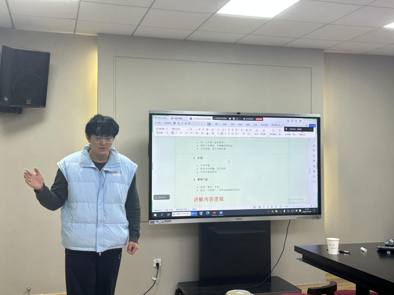 本次培训内容丰富、实用性强,围绕讲解能力提升、礼仪规范养成、应急处置方法等模块展开。在讲解示范环节,李齐焱结合自身讲解经验,从体态站姿、手势运用等细节入手,对讲解动线设计、礼仪规范等方面作出了生动示范与专业指导。他表示,一名优秀的法治文化讲解员,不仅要有扎实的法治文化知识储备,还要注重外在仪态与内在气质的统一,鼓励学员以自信从容、专业得体的青春风采,将法治文化的内涵生动地传递给听众。