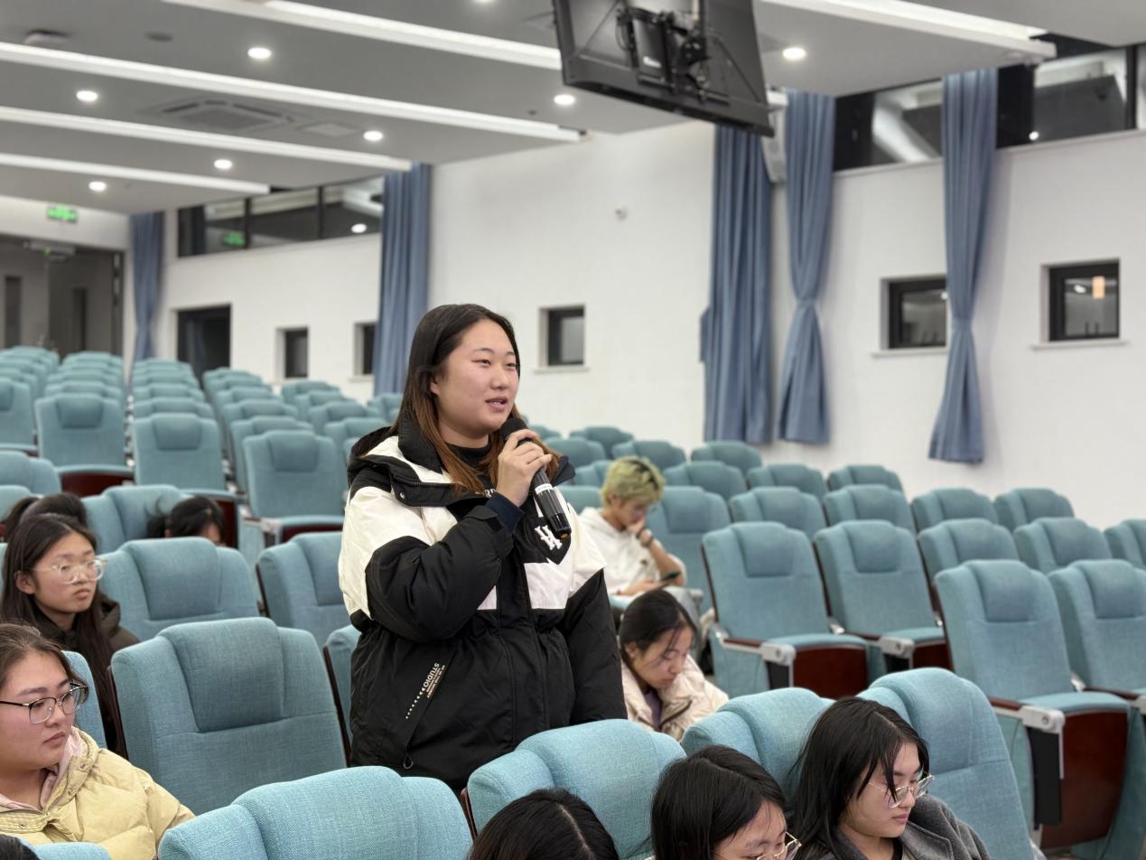 在自由交流环节,同学们踊跃提问,现场气氛热烈。嘉宾就职业选择、实习准备、学历提升、行业竞争等话题与同学们展开互动,耐心解答大家的困惑,并鼓励同学们保持学习热情,坚守专业初心。