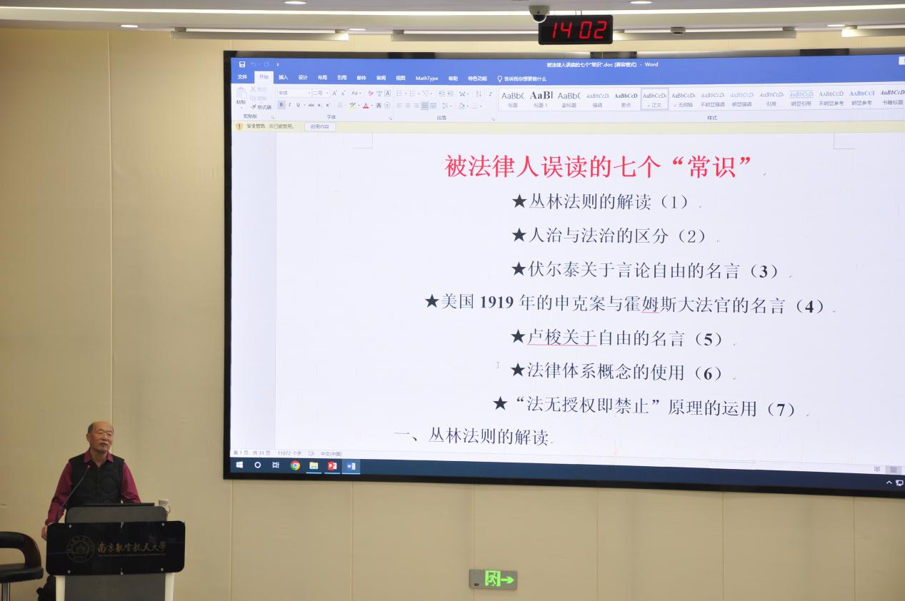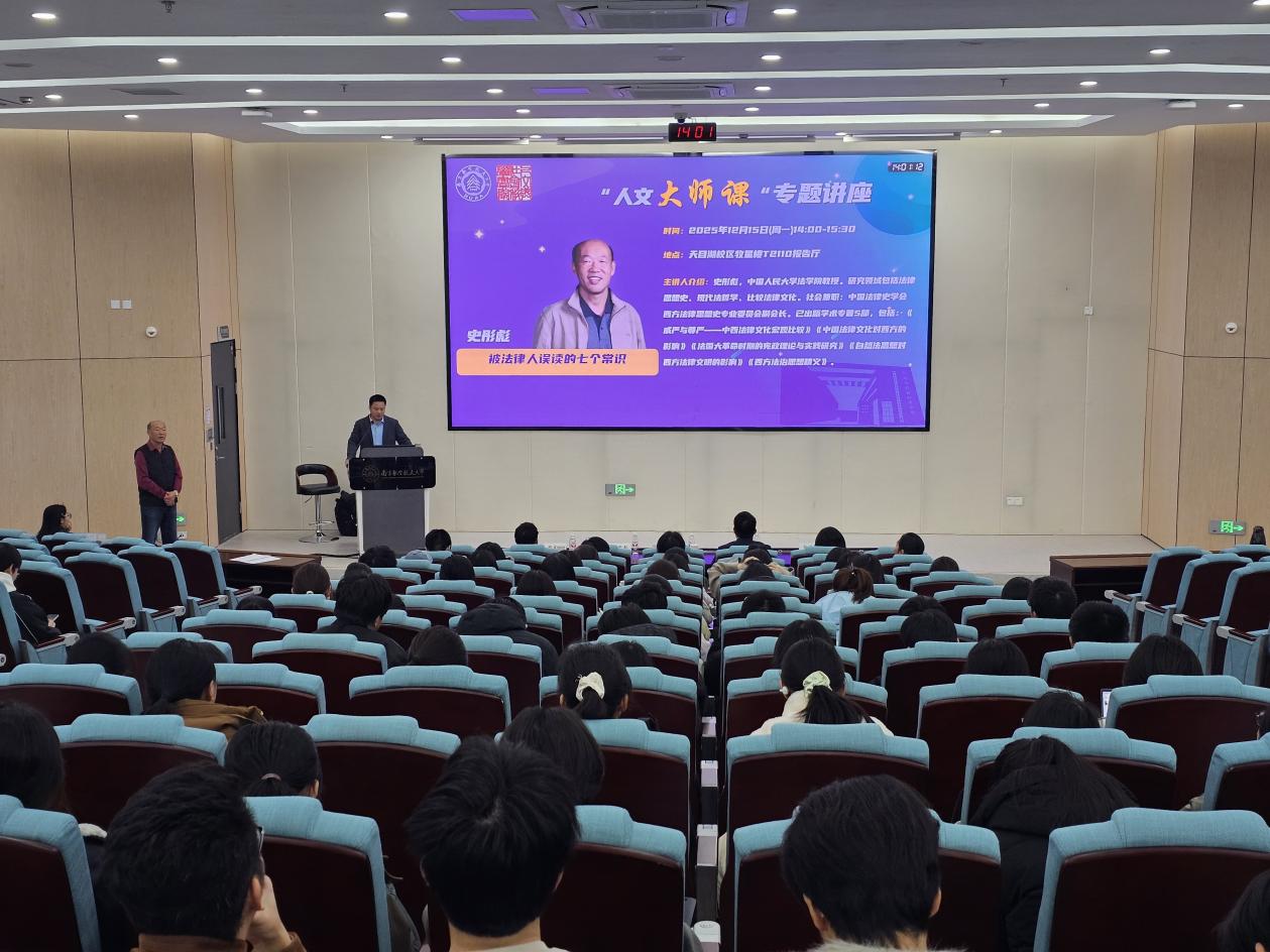 在天目湖校区T2110报告厅成功举办第二十三期人文大师课。本次活动特邀中国人民大学法学院教授、中国法律史学会西方法律思想史专业委员会副会长史彤彪担任主讲嘉宾,围绕“被法律人误读的七个常识”主题展开专题讲座。讲座由院长高志宏主持。